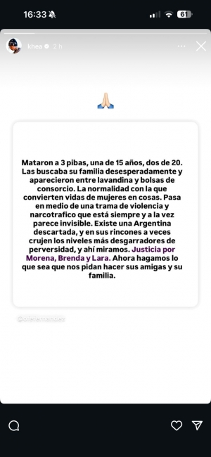 Tras el triple femicidio ocurrido en La Matanza este fin de semana, varios artistas locales compartieron posteos en redes pidiendo justicia para las familias de las damnificadas.